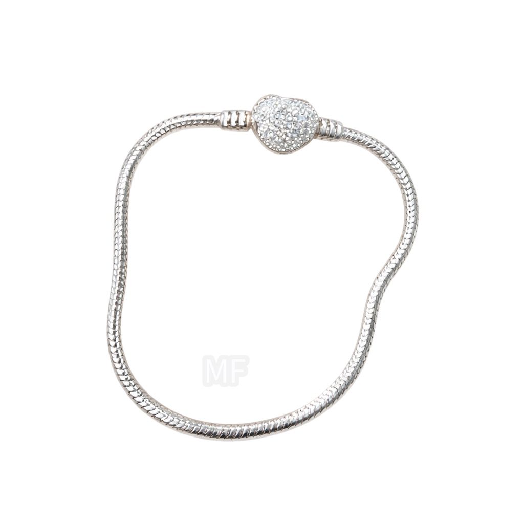 Pulseira life fecho coração crevejado com zircônias em prata 925